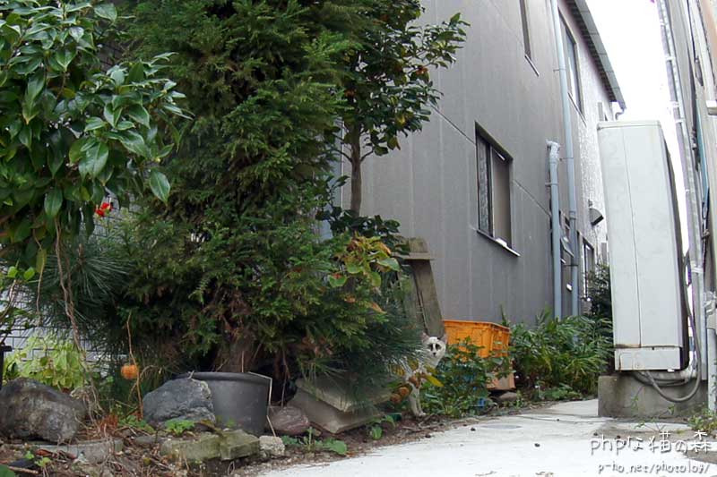 こんな時、お散歩レンズがMADOKA180ってのは撮りづらいのですが、さっき横断した猫ちゃんに追いついた。 パンダみたいな顔だにゃー。^^