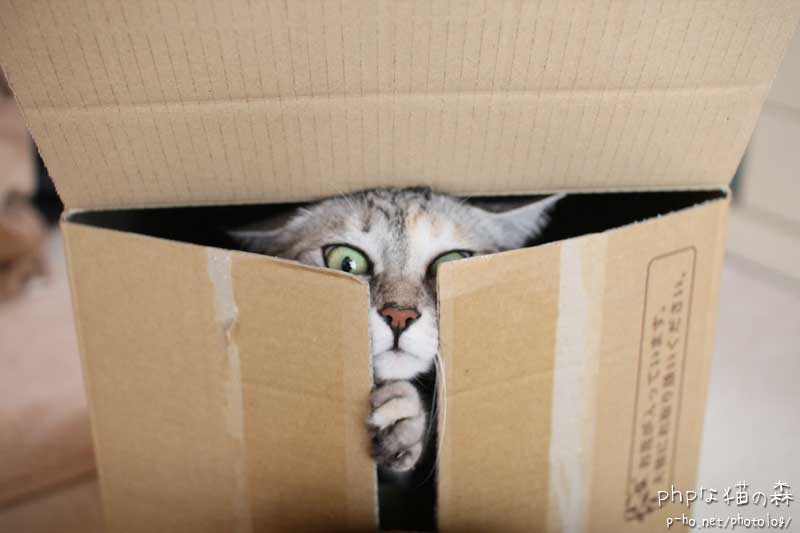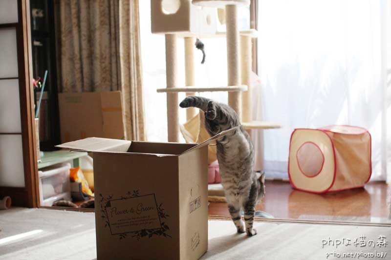 今日は植木屋さんが入って、トラックが出入り口をふさいで出かけられない状態だったので お部屋で“箱から脱出ごっこ”です。楽ぴー♪