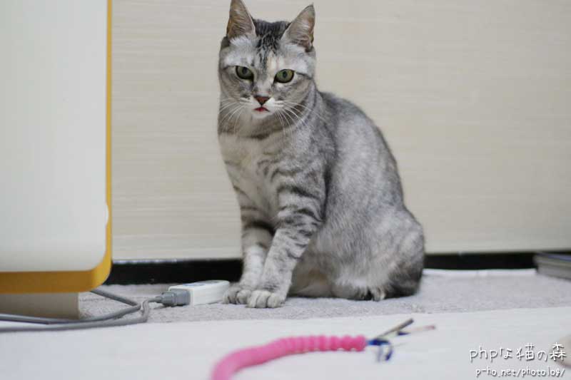 トイレが済めばお決まりの High! がやってくるはずなので、 普段は反応が悪いピンクの猫じゃらしを使ってみる。