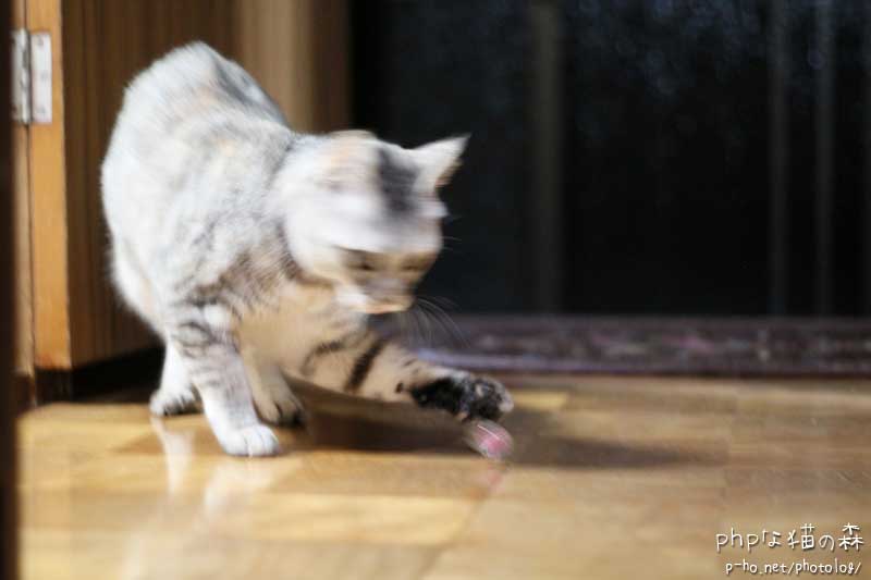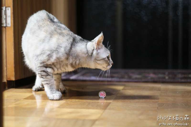 ブレてなーい! 玄関前でボール遊びのちぃ。たまたま一瞬止まったショット。