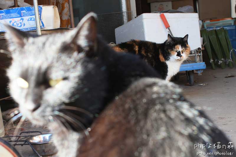 私は食べる人なので、待つ間に猫さん撮影。黒猫ジジと三毛猫みーこさん。