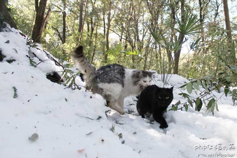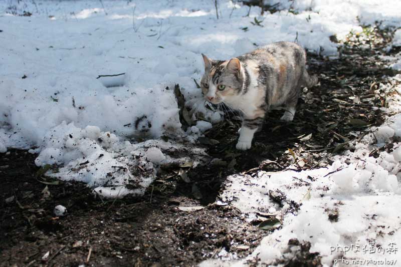 一昨日は雪を踏めずにいた不二子。もう慣れたにゃ。