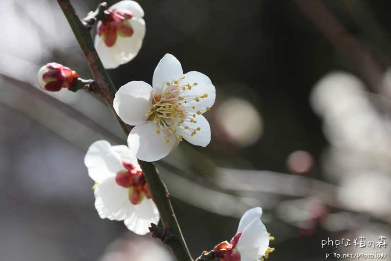 春を告げる楽しみのひとつ、隣の梅。これを撮るつもりで今日は100mmを持参した。