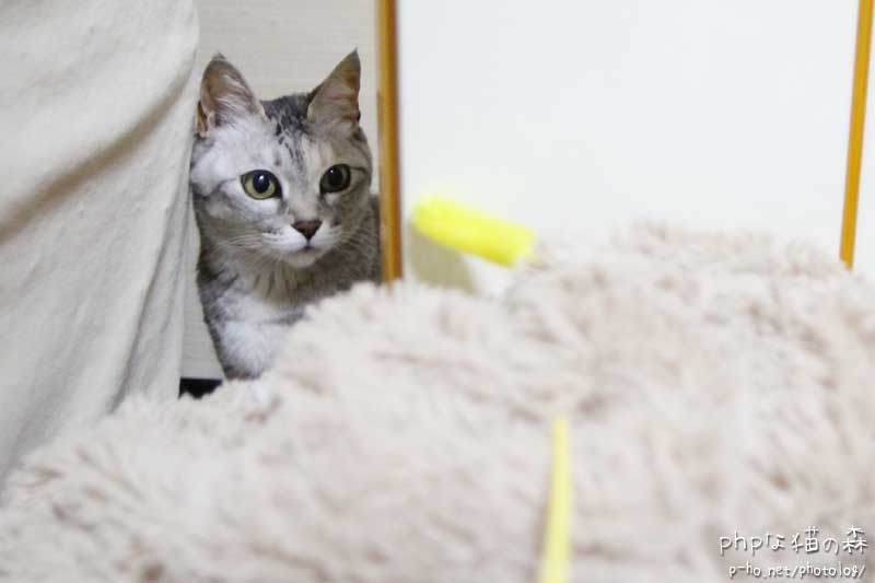 旧キャットタワーでじゃらし棒遊びをすると、子猫の頃が懐かしい。