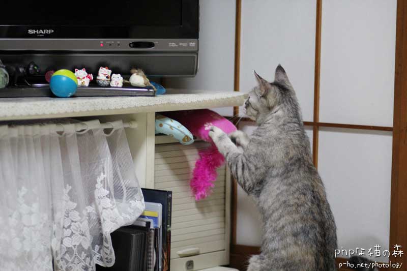 この「にゃんコプター」、楽して遊べる良いおもちゃです。