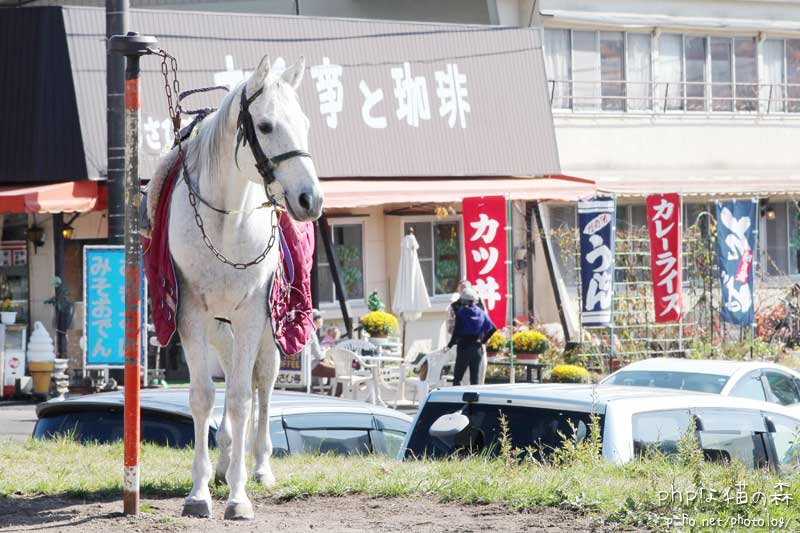 駐車場からロープウェー乗り場の間も、疲れたらお馬に乗って移動って手もあるのですが、自力で歩きましたさ。