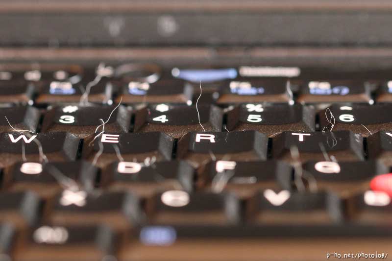 意識して電源を切って、最強ダイソンでキーボードを吸ってみました。ちぃ毛が生えました。(汗