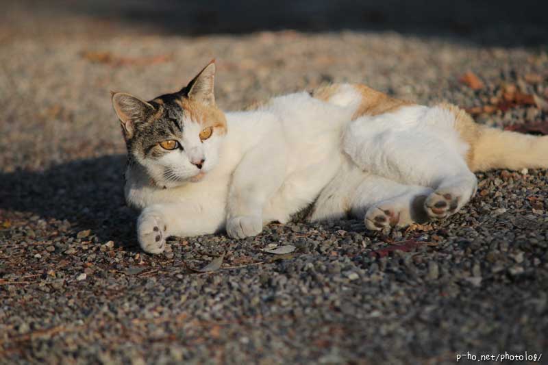 テラミケに会いに行って、隣のサバ白に会う。ここ、西側が絶壁の高台で眺めが最高なんです。