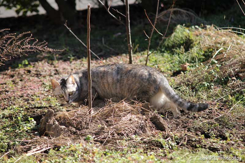 たまちゃんちに逃げたちぃ。見ていたり、呼んだりすると安心するのか、よけいに帰って来なくなるので、