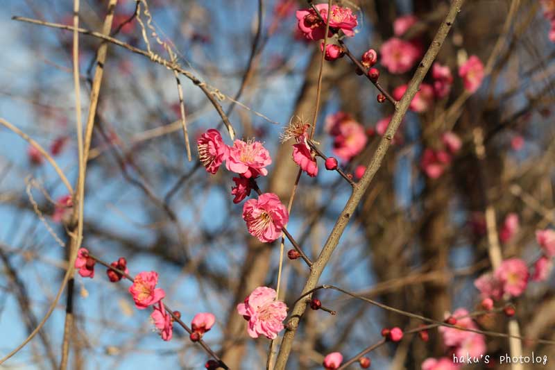 道端の紅梅。午前は歯医者。(今日は自分の治療です。^^;)