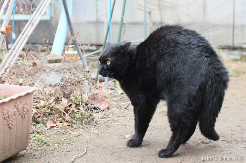 みーこは事務所横でアンモナイト。ハウスに入ったほうが暖かいのに、これはこれで猫らしくていいのか。