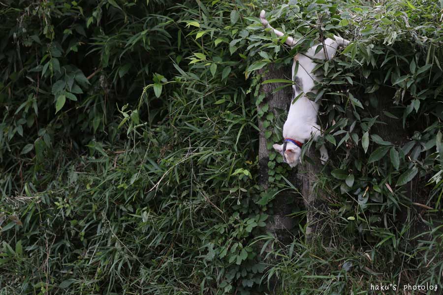 下からではちょっと撮りようがないので、私は反対側の石垣を登って、