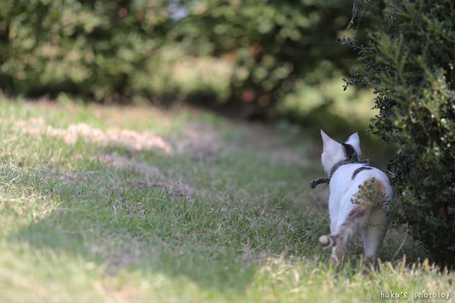 帰宅して、しばらくごろごろしていると、ちぃが起き出します。さて、庭散歩。