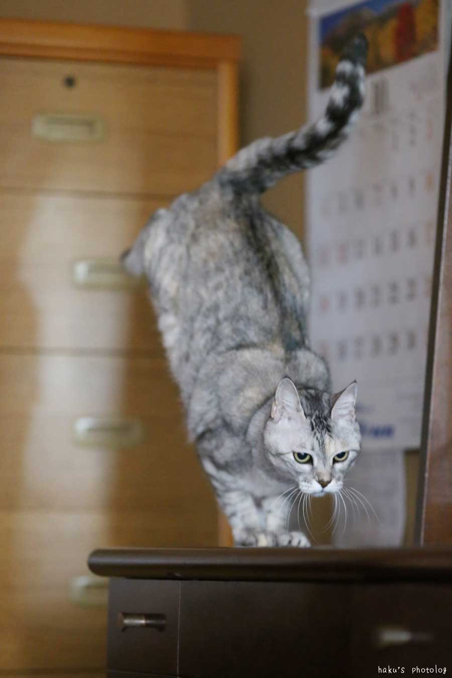 獲物を追っている三毛ちゃんはステキです。
