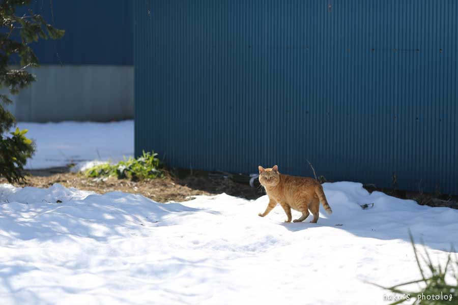 ウチのはぜったい雪の上は行かないけど、アングルに工夫をすると雪の上を歩いているようにも見える。