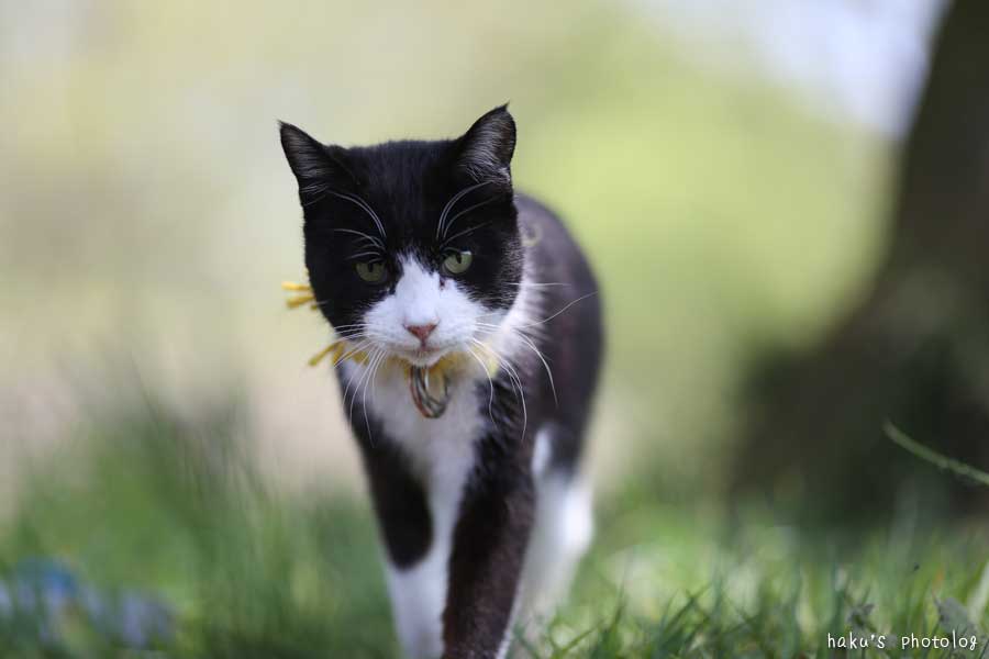 クサギ。たんぽぽ色の首輪。季節感がいいです。