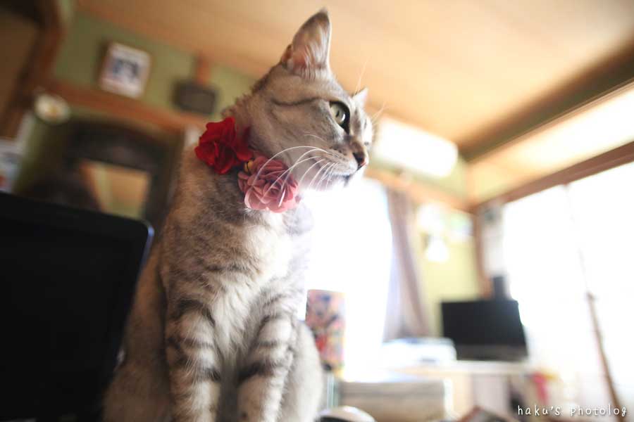 我が家で唯一クリスマスプレゼント(BOOさんから花のシュシュ)をもらったちぃ。いいなー!