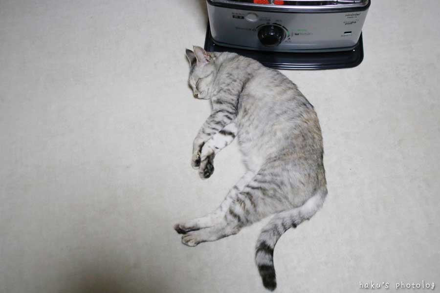 昼は窓際で、夜はストーブ前で、死んだように寝ています。