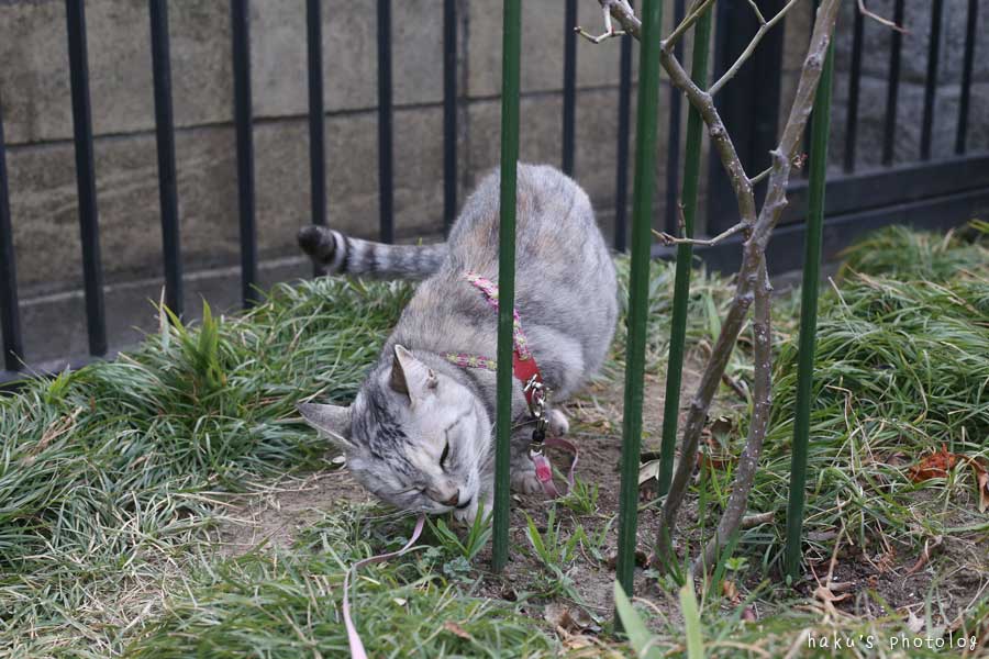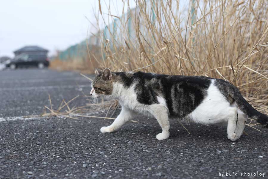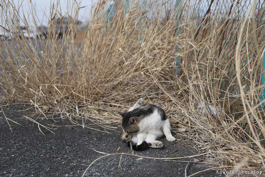 駐車場の隅で毛繕いに余念がない猫さん。
