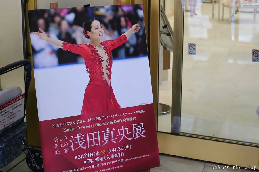 高崎髙島屋で開催中の“浅田真央展”。名場面の写真や、着用した衣装、スケート靴、メダルの展示、