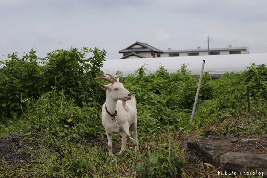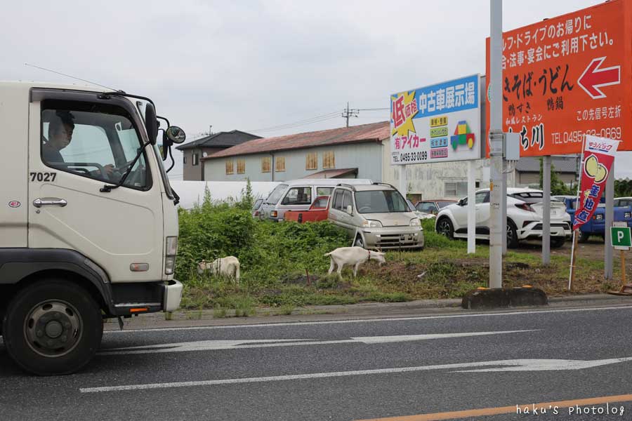 道路脇に山羊さん。みんなが見て行く。
