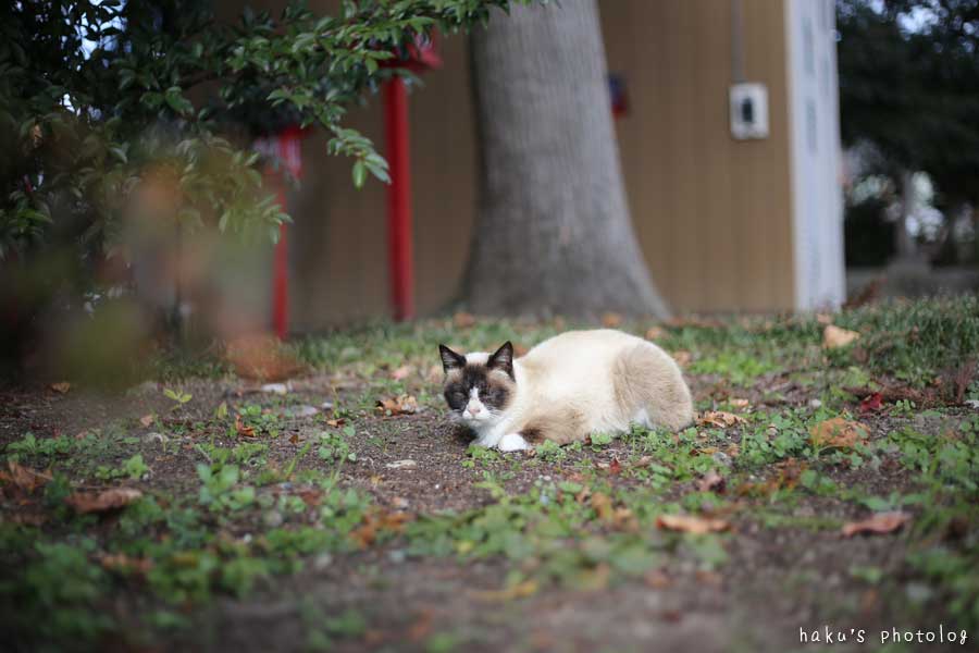 我峰八幡神社で猫さん。"我峰"は"わがみね"と読みます。