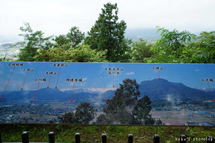 晴れていればこう見えるという見本の看板と、今日の霧。