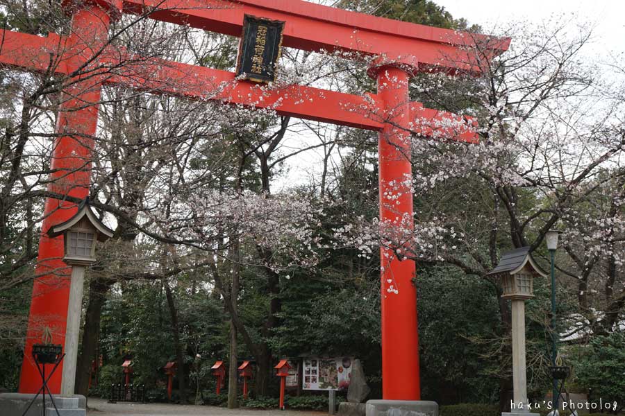 ボケが見頃だという情報があったので冠稲荷神社へ。