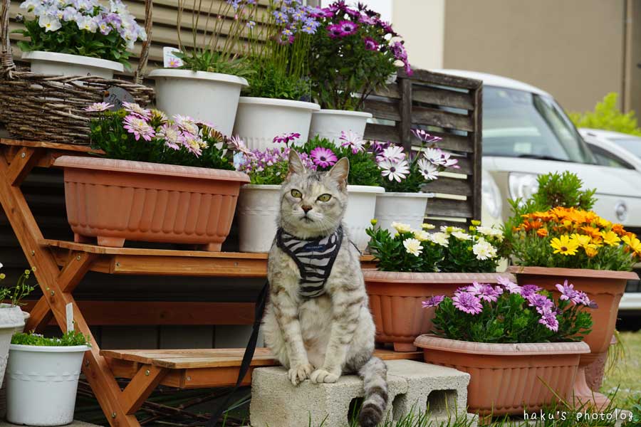 雨戸を閉める時までずーっと外で過ごす家猫。