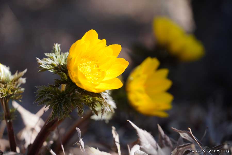 寒さ対策で花たちが玄関に退避しているので、花台で我が物顔。