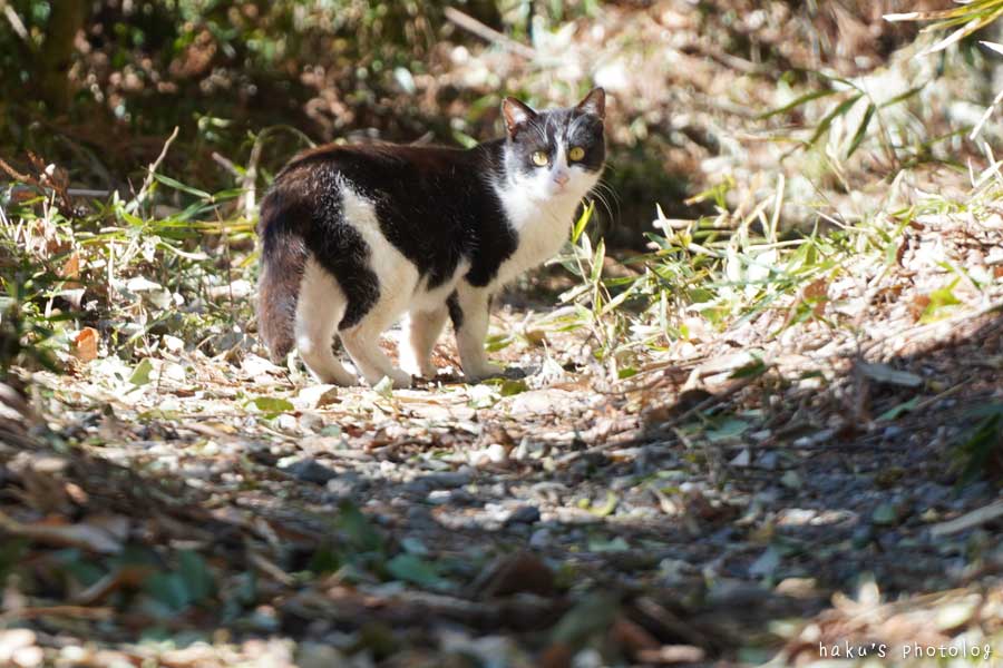一方、神明宮の奥で見かけた猫さん。人見知りなので135mm(換算200mm)でも届かない。
