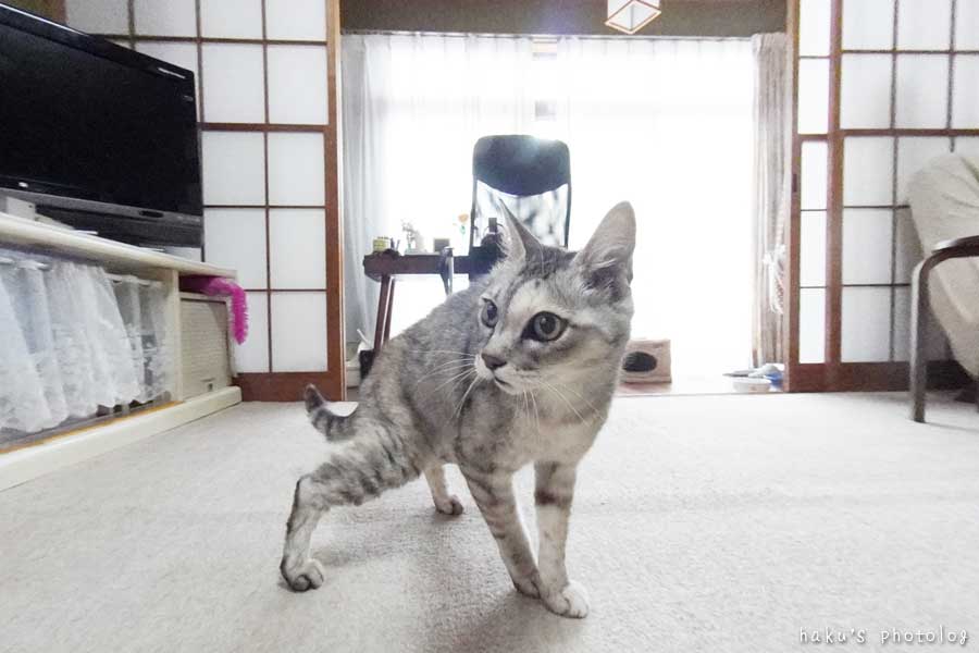 今日は涼しくなり、いつもの窓際では寒いらしく居場所を決めかねている。