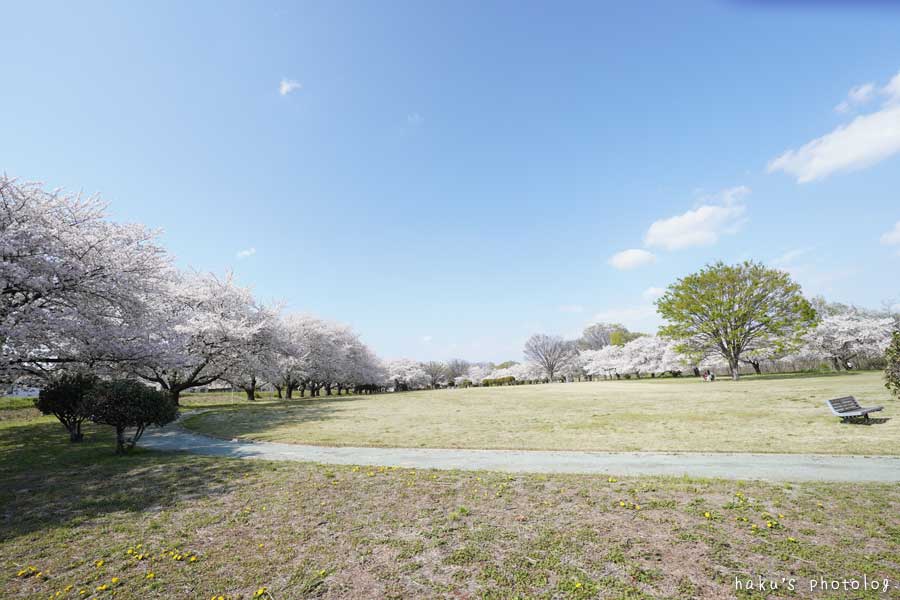 ほとんどがソメイヨシノで、南の端には枝垂れてるのや八重のも少々楽しめる。