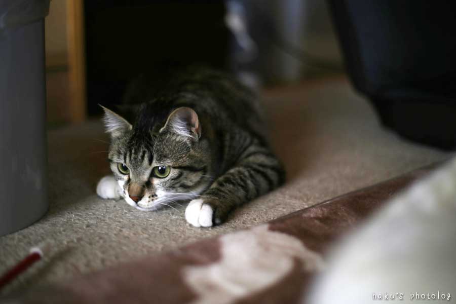ちぃが遊んだじゃらし棒の、先が取れた“ただの棒”で遊ぶのがお気に入りだ。^^;