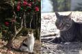 正門西の駐車場の植え込みでふたりのサビさん。 左はタンタンのお母さんで、右がエリーズサビちゃんかな。自信無し。(汗