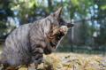 日陰が迫ってきたので日向へ移動するしげみちゃん。