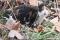 川原の近くで会った猫さん。知らない猫さんを撮るには100mmでも短い。 近寄れば後ずさるし。森で用心深い“くろみぃ”の3倍以上の距離を保ちます。