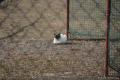 散歩の途中、グラウンドの片隅で猫さん。30分以上経った帰路でも同じかっこうしていた。
