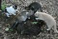 チビちゃんのまわりは女ばかりだけどね。 4猫も集まると切り株の食卓じゃ手狭だなぁ。