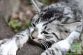 土曜日の写真です。ごわんをいただいて満足げにまったりするシュン。