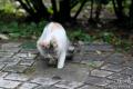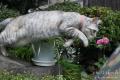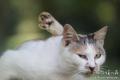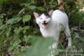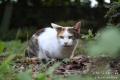 今度は正門外の大きな植え込みの中でまったりしていた西の白サバ。