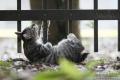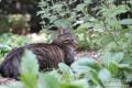 茂みの中で丸くなってお休み中のロボミケ。シャッター音でお目覚め。