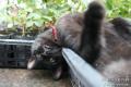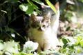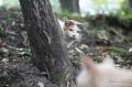 それにしても子猫は小さすぎて撮りずらい。いつものアングルだと草しか写らない。