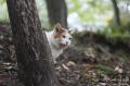 大きな切り株隣の木の根元でぐっすり寝ていたジュニア。起こしてあげた。(汗