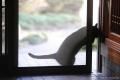 見ていたらジジが網戸を開けて玄関から入ってくるところでした。