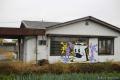 国道50号沿いの廃墟、以前から国道側は文字アートが描かれていたのだけど、側面にあの子が追加で描かれているのを発見。