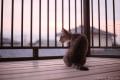 夕焼け。2階のベランダの網戸を破ってくれたので、窓が開いている時はもう出入り自由。