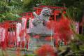 朱い鳥居が並ぶ脇に赤い曼珠沙華。