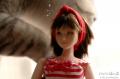 ところでさみしいお知らせ。今日、オビツから新しい赤いハイヒールが届いて、鉄板の上なら自立できるようになった桔梗ですが 私が黒い服をプルオーバーで着せたら、鼻の頭に色移りしてしまいました。