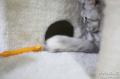 チーズハウスでおやすみのちぃ。 わざわざ狭い所にもぐりこまなくてもと思うけど、考えてみると人間用カプセルホテルよりは広い。